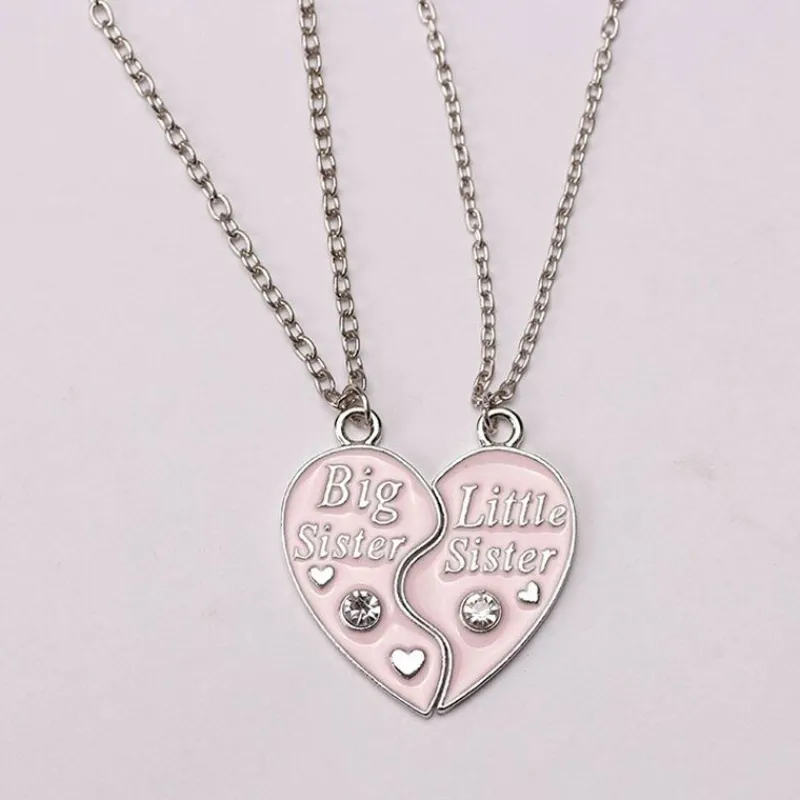 2 st Big sister little sister Ljuset rosa & silver två delbart hjärta halsband med Med hjärtan och diamanter