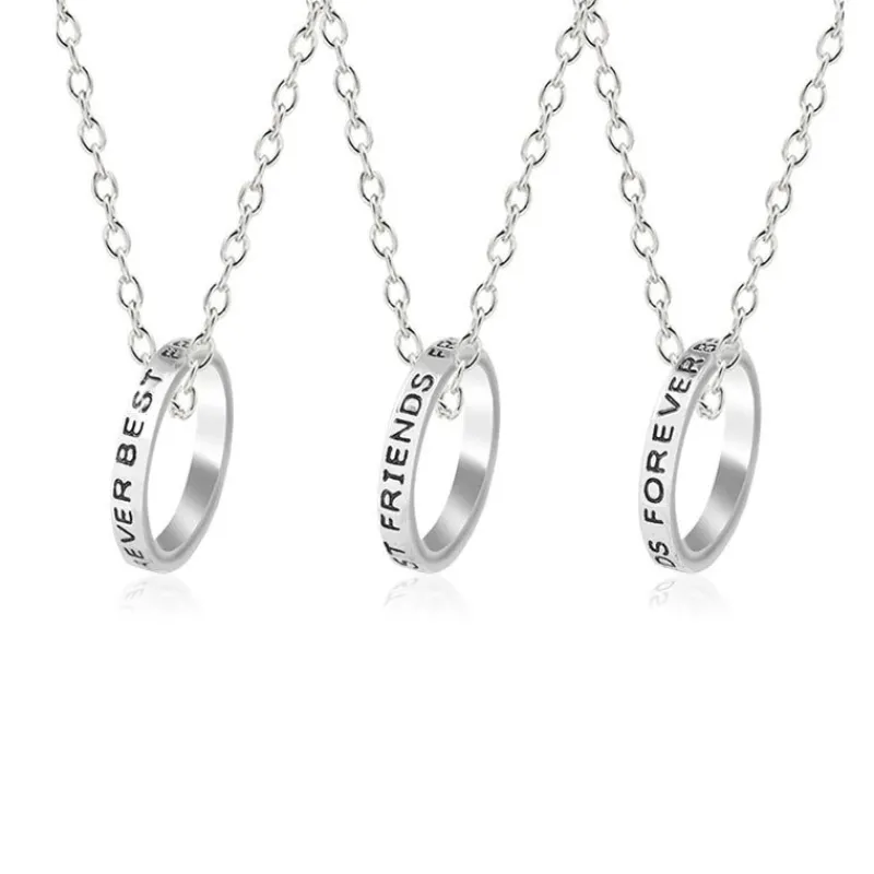 BFF Halsbanden har tre kedjor och tre ringar med text ”Best Friends Forever” silver plätering i ringar