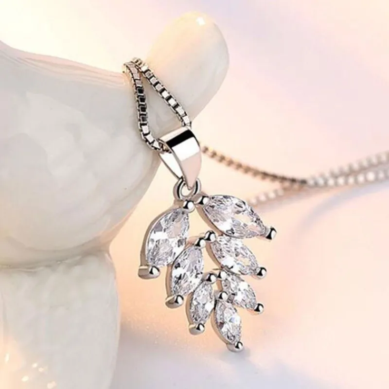 Vackra & billiga Äkta 925 Silver Cubic Zirkon Ice Leaves Halsband i 925 sterling silver