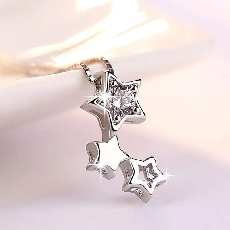 Äkta 925 Silver Stjärnor halsband<VSmycken Fashion