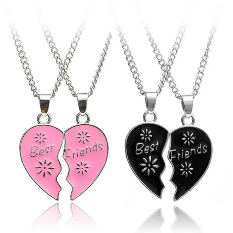 2 st Best Friends två delbart hjärta svart BFF Halsband – Bff Vänskaps smycken