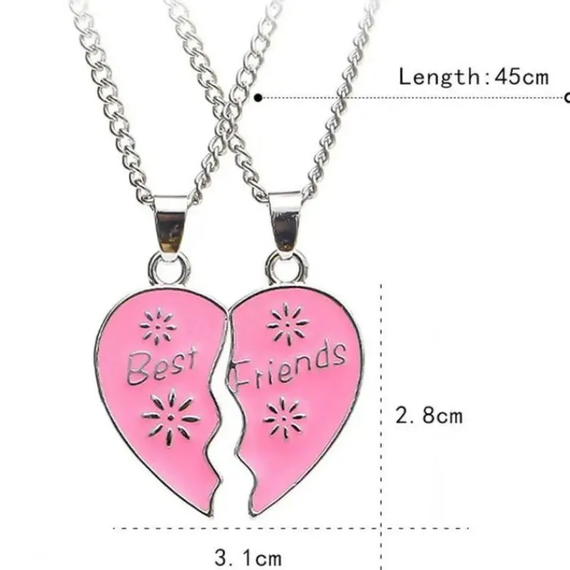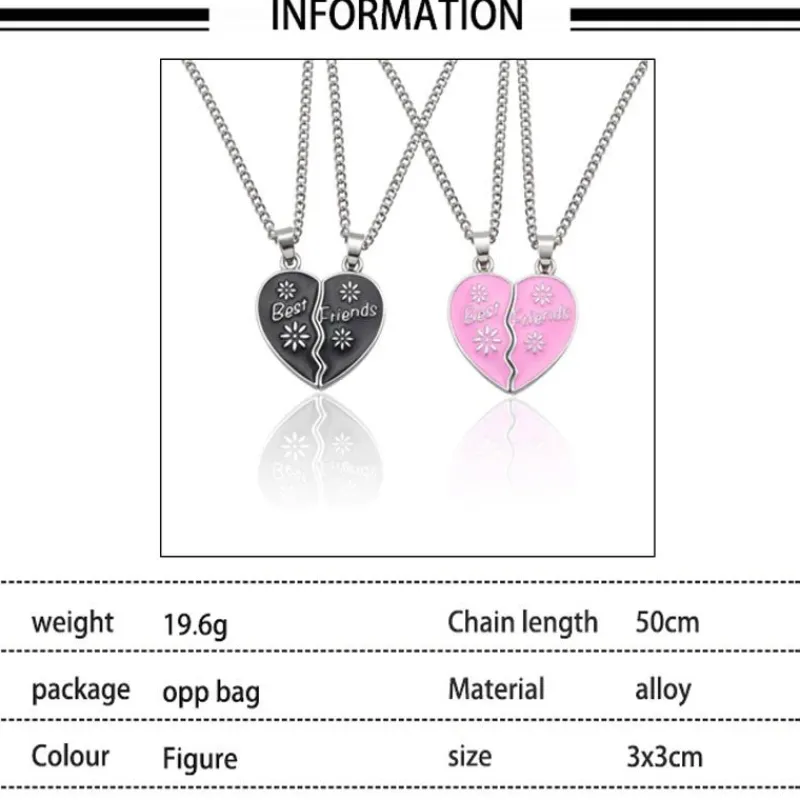 2 st Best Friends två delbart hjärta svart BFF Halsband – Bff Vänskaps smyckensotrlek : 2.5 * 2.9 cm / längd : 45+5c…