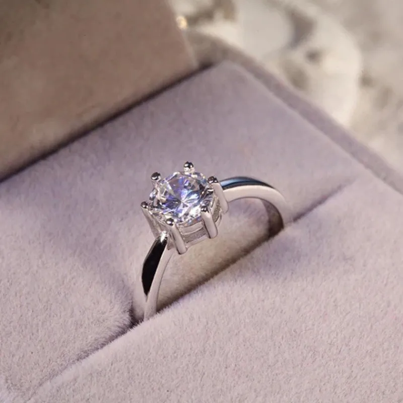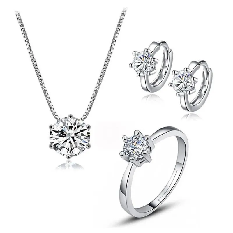 Classic Dazzling 6 Claws kubisk zirkonia smyckeset i äkta 925 silver