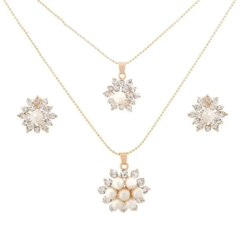 Elegant guldpläterat smyckeset med australiska kristaller och vita pärlor bestående av 3 delar.