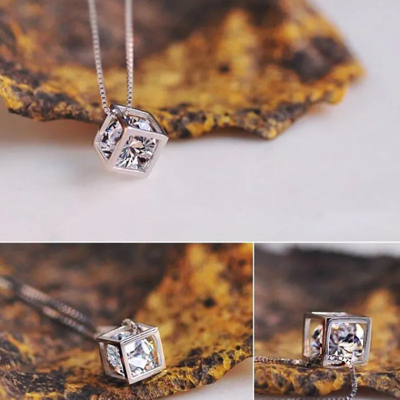 Vackra & billiga Cube Zirkon Square Dangle Diamantkub Halsband med AAA Cubic Zirkon i 925 sterling silver