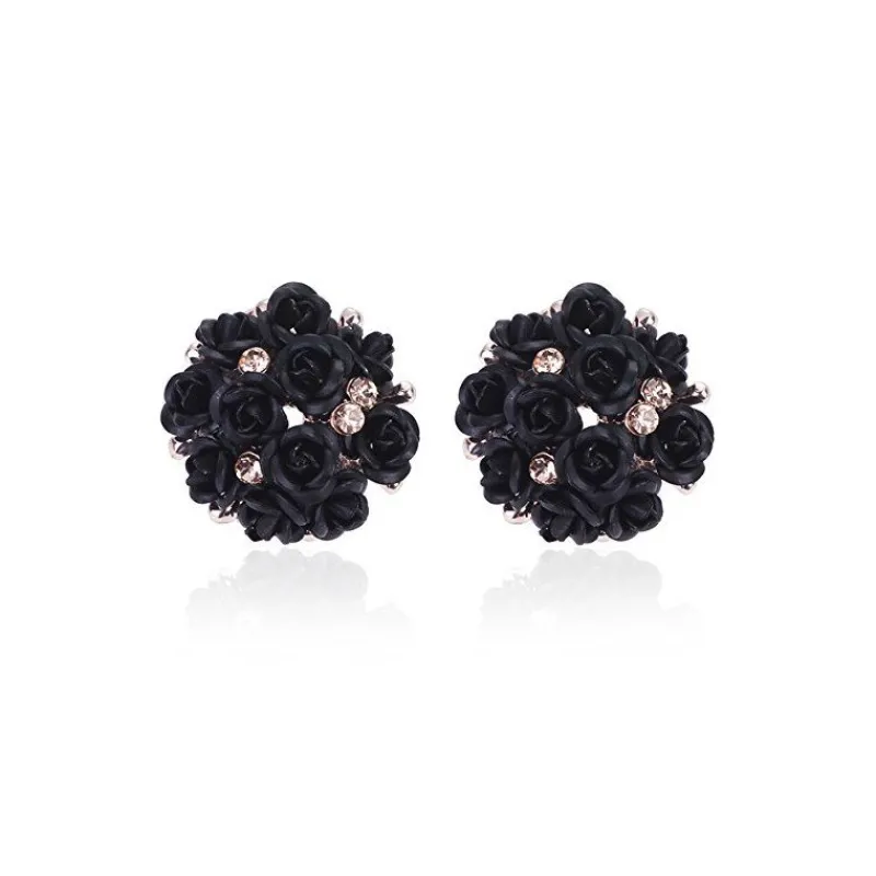 Söta örhängen med black och gnistrande stenar, guldpläterade detaljer.