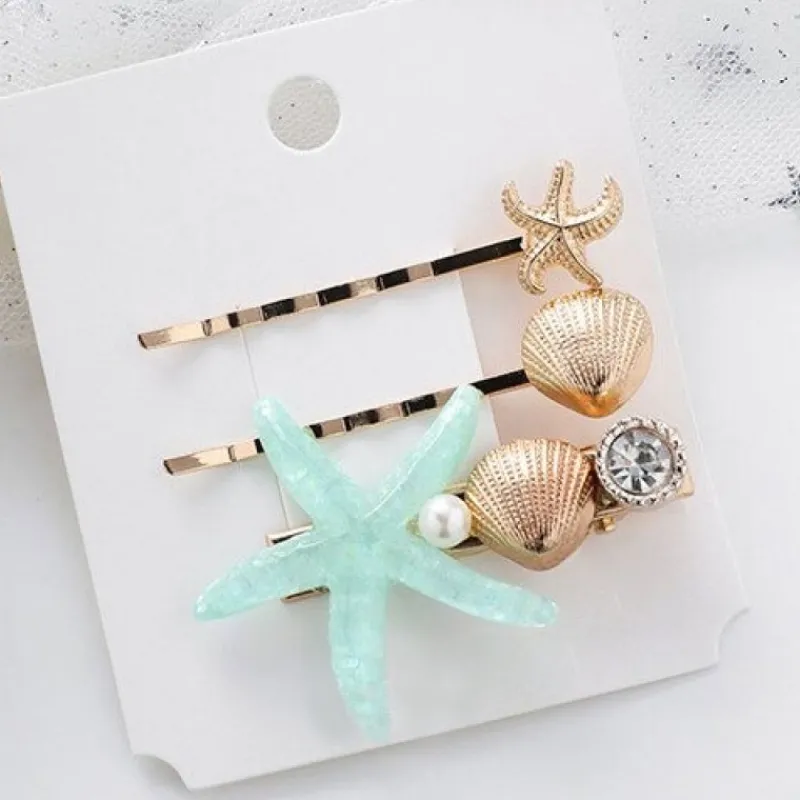 Fina Hår Accessoarer med havets stjärna och Snäckskal blå – Hårtillbehör – Hårspänne – hårklämma