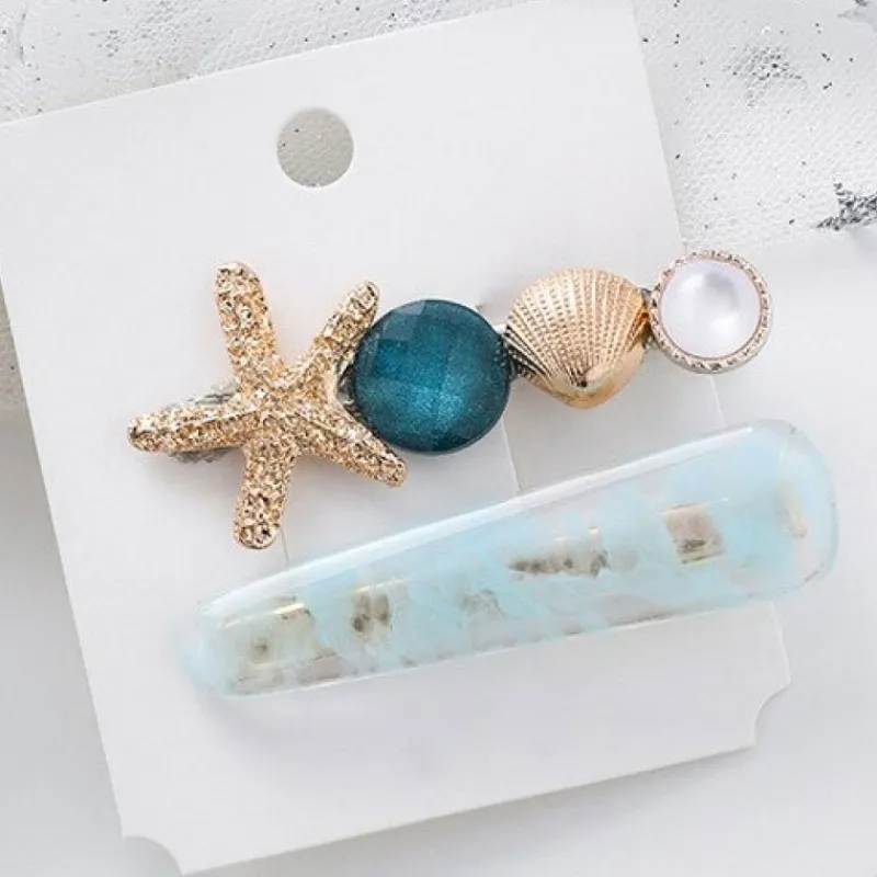 Fina Hår Hårtillbehör med havets stjärna och Snäckskal blå<VSmycken New