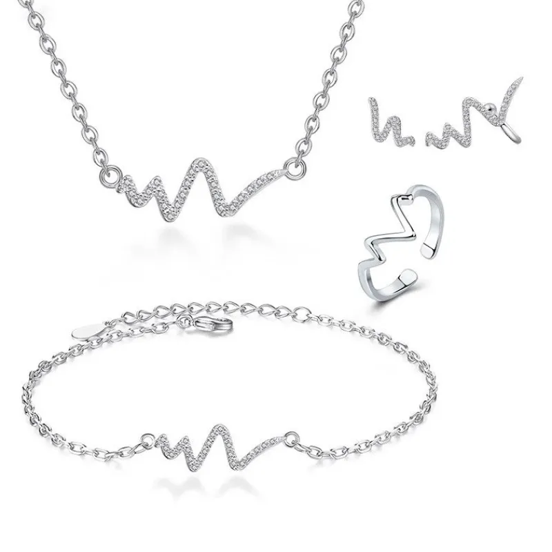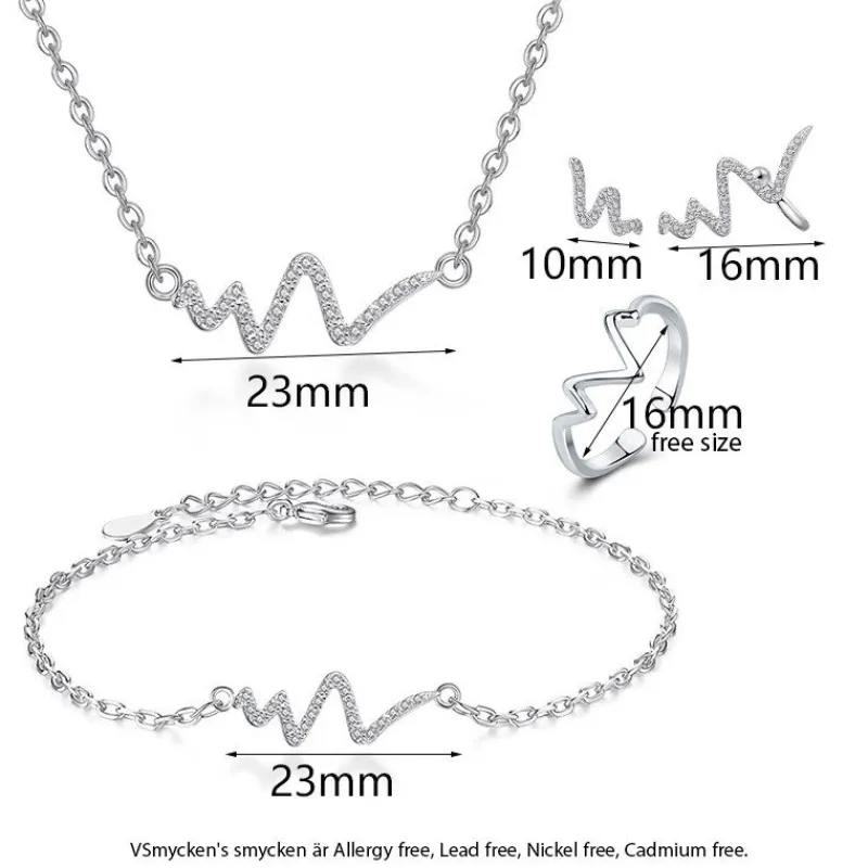 Kubisk zirkonia Heartbeat Curves smyckeset i silver: Halsband, armband, ring & örhängen i 925 Silver & Cubic zirconia
