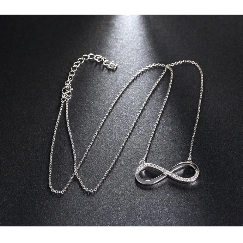 Vackra & Snygga Platinpläterad Infinity HALSBAND – 925 Silver Halsband med AAA Cubic Zirkon i silver