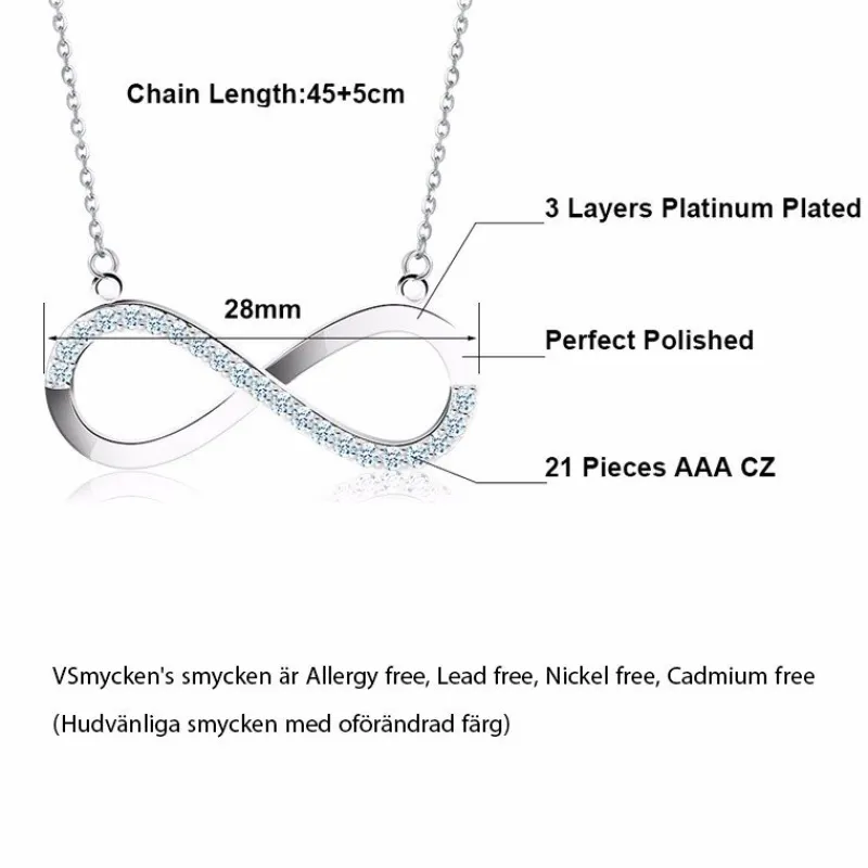 Komplettera din outfit med vackra Platinpläterad infinity Halsband med AAA Cubic Zirkon i silver i bästa kvalitet – hos VSmycken hittar du Billiga smycken och Vackra accessoarer med bästa kvalitet för låga priser och alltid fri frakt & retur och säkra betallösningar via Klarna.