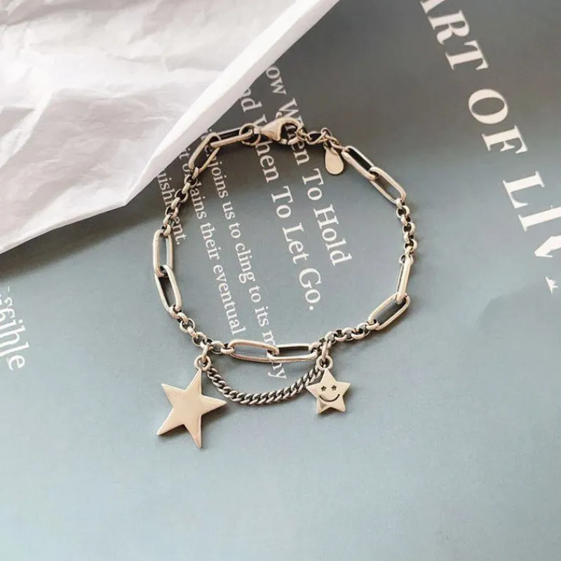 Komplettera din outfit med vackert Äkta 925 Silver Enkelt retro leende ansikte Star Chain Armband i 925 sterling Silver i bästa kvalitet – hos VSmycken hittar du Billiga smycken och Vackra accessoarer med bästa kvalitet och för låga priser med alltid fri frakt & retur och säkra betallösningar via Klarna.