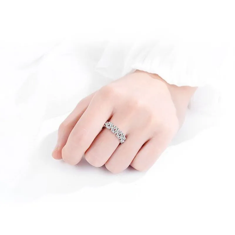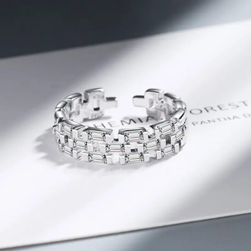 snygg ring i äkta 925 Sterling Silver Elegant Full Cubic Zircon Crystal Open Ring