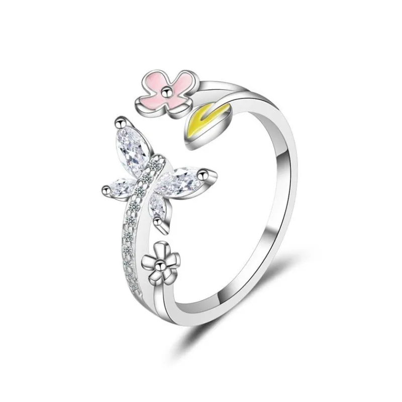 Vacker 925 Sterling Silver / AAAAA Zircon Butterfly Flower open RingTillverkad av 925 sterling silver + Cubic Zirconresi…