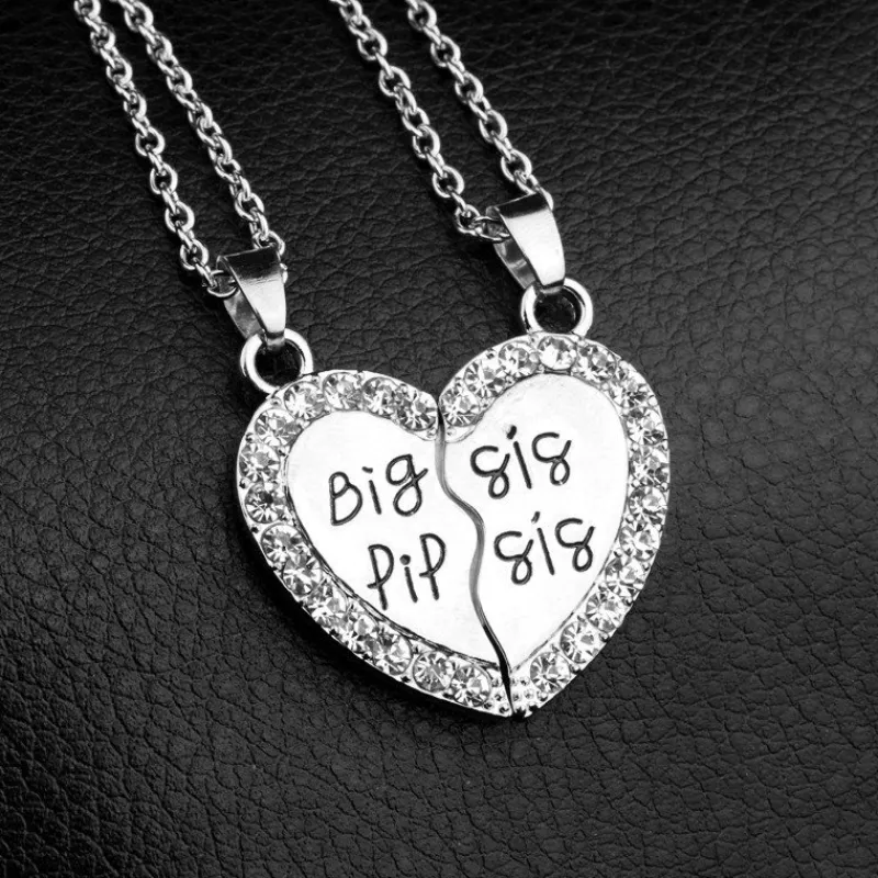 2 st Big sister Little Sister Halsband Ljuset silver två delbart hjärta halsband med rosa diamanter – bff Vänskaps smycken