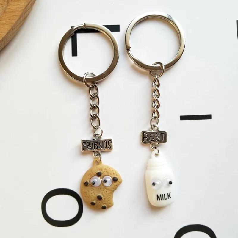 2 st Cookies biscuits and Milk nyckelringar Best friends keychain