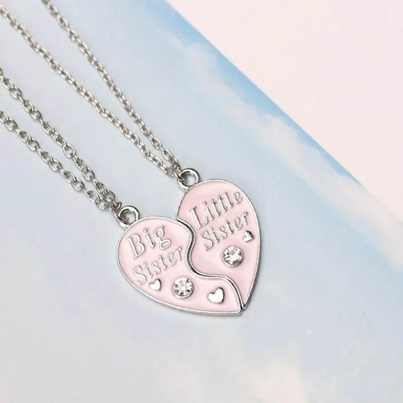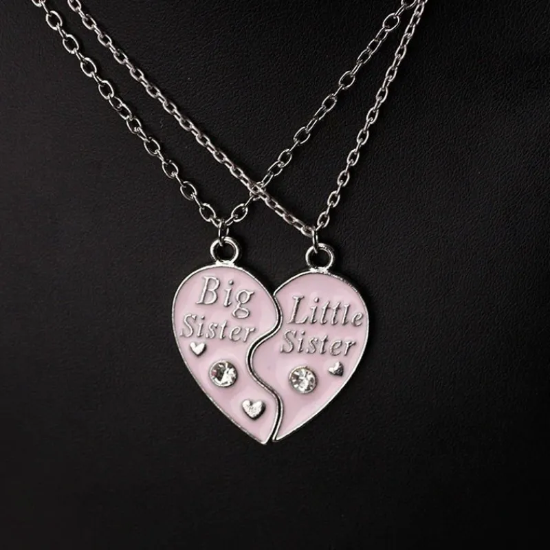 2 st Big sister little sister Ljuset rosa & silver två delbart hjärta halsband med Med hjärtan och diamanter