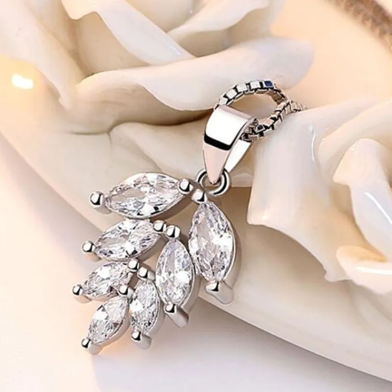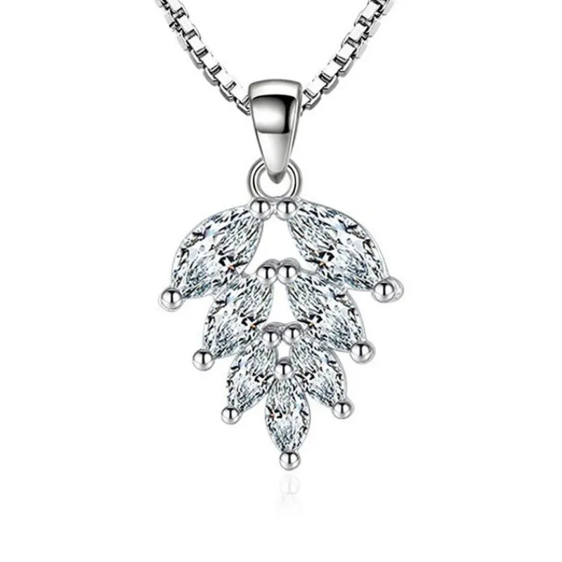 Vackra & billiga Äkta 925 Silver Cubic Zirkon Ice Leaves Halsband i 925 sterling silver