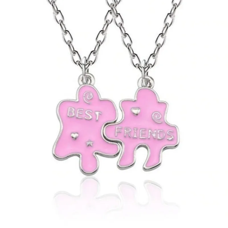 Best Friends rosa puzzle Halsband med 2 delar med en kedja till vardera delen.