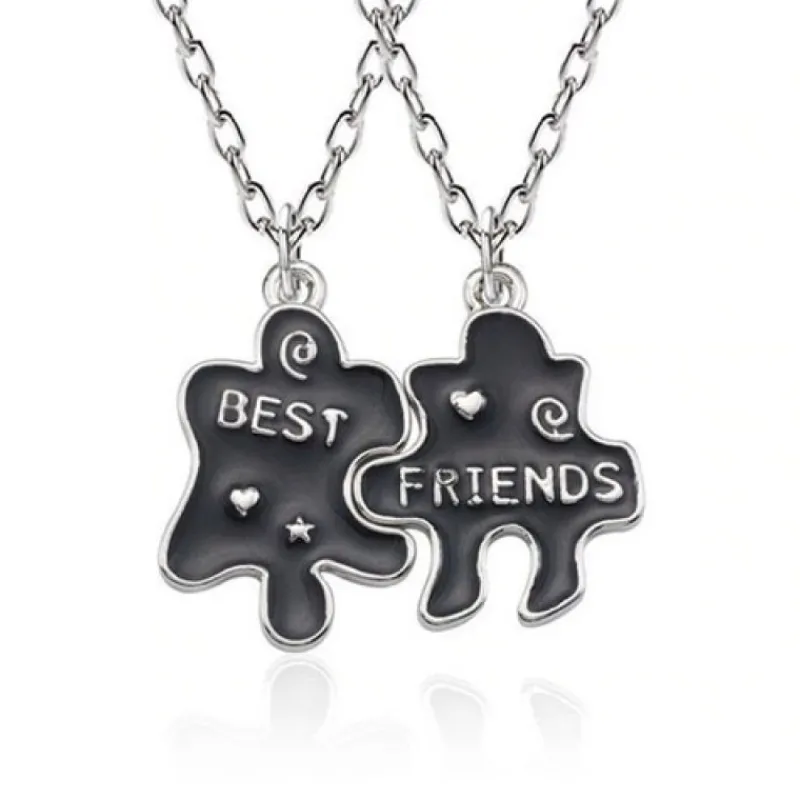 Halsband med 2 svartfärgat puzzle med texten: Best Friends