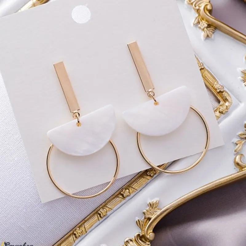 Halv cirklar och ringar örhängen i gyllene och vita färger – Half Circles and rings golden and white color ear earrings