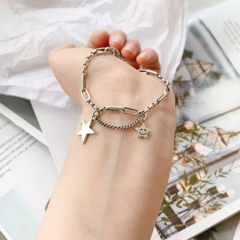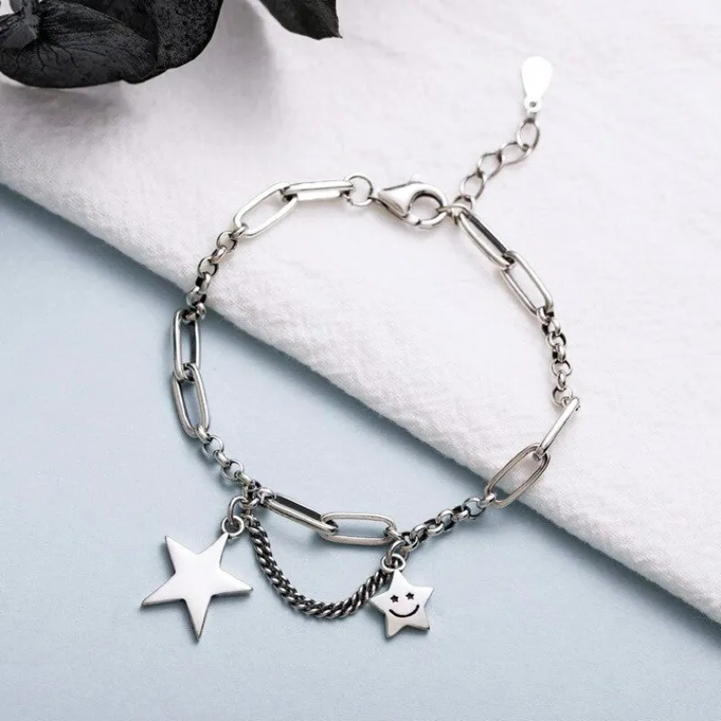Komplettera din outfit med vackert Äkta 925 Silver Enkelt retro leende ansikte Star Chain Armband i 925 sterling Silver i bästa kvalitet – hos VSmycken hittar du Billiga smycken och Vackra accessoarer med bästa kvalitet och för låga priser med alltid fri frakt & retur och säkra betallösningar via Klarna.