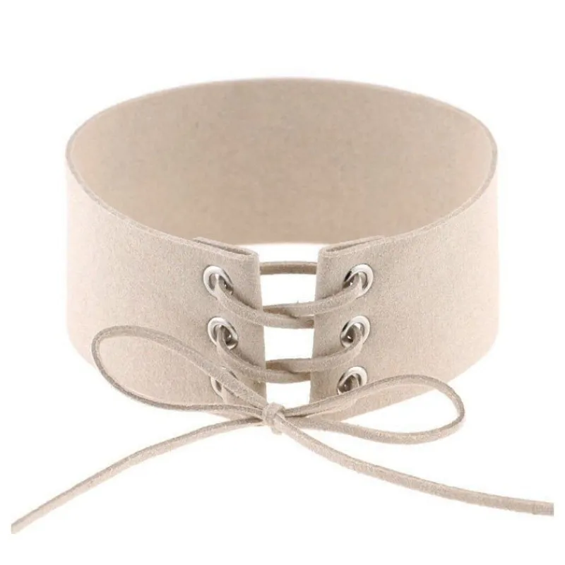 Trendigt halsband choker läder beige.Halsbandet passar alla.